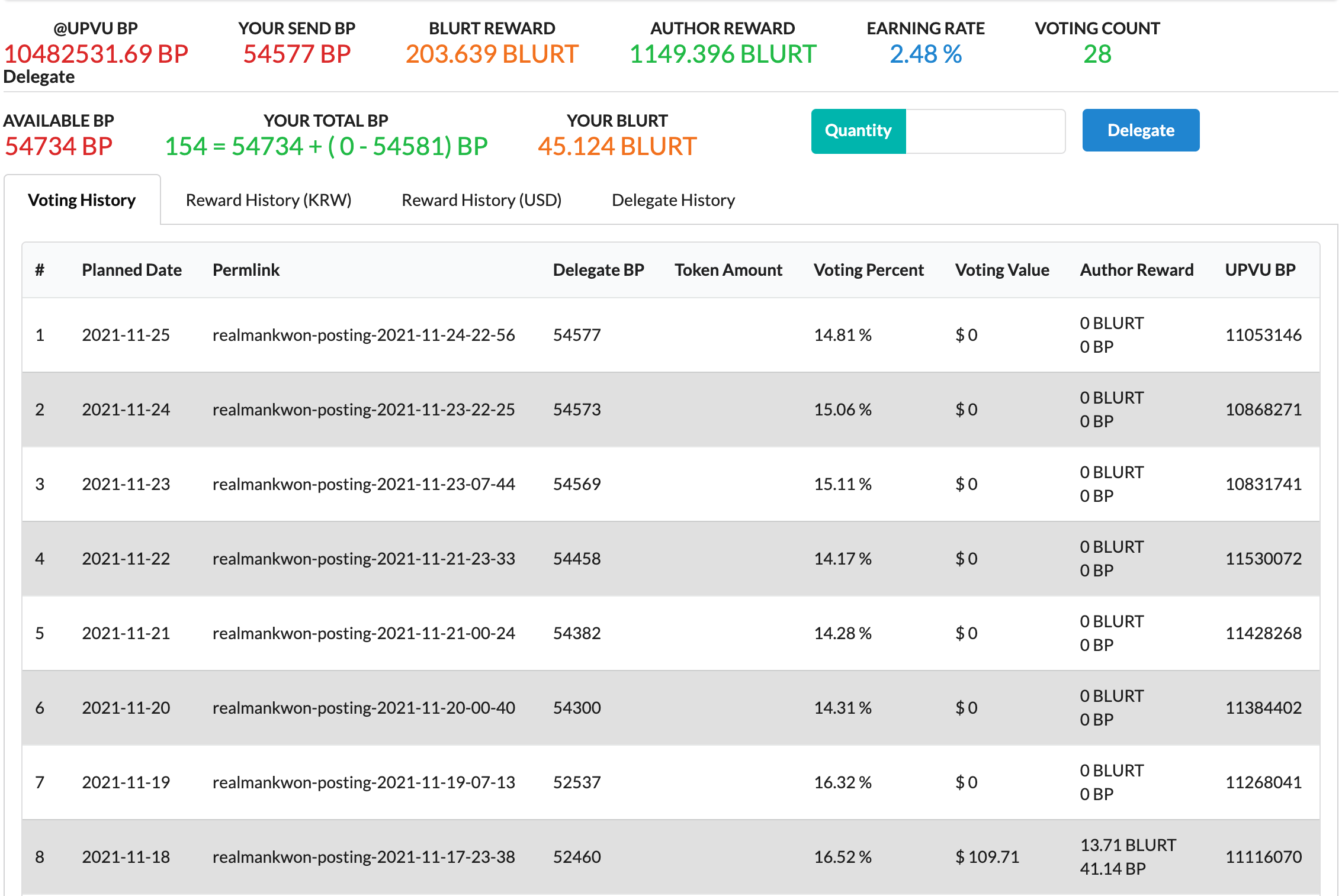 안녕하세요 @realmankwon입니다. 블러트 업뷰를 출시하고 아직 출시하지 못한 것이 홈페이지입니다. 블러트에는 스팀엔진도 없고 트론도 없기 때문에 이 부분을 빼는 작업을 하고 보상 관련 부분도 스팀 달러가 없기 때문에 블러트로만 계산되도록 수정하는 작업을 하였습니다. 다음으로는 현재 서버에서 웹서버를 2개 구동을 시켜야 하는 작업이 남았었습니다. 이것을 위해 별도의 서버를 2개로 돌리기는 힘들기 때문에 기존에 서비스되고 있는 스팀 업뷰 서버에 블러트 업뷰를 실행시키도록 해야합니다. 기존에 https 설정을 위해 NginX를 사용하여 포트 포워딩을 하고 있었는데 이것을 좀 응용하여 설정을 해 보았습니다. 이 작업을 하기 전에 일단 도메인 사이트에서 CNAME 을 통한 서브도메인 설정을 해줘야 합니다. blurt.upvu.org 로 일단 설정을 마쳤네요. 그 후 서버 설정 파일을 `/etc/nginx/sites-available/` 아래에 생성한 후에 `/etc/nginx/sites-enabled/`을 실행하여 해당 폴더 아래의 설정 파일로 이식시켜주는 작업을 하면 됩니다. - sudo vi /etc/nginx/sites-available/blurt_web.conf ~~~ server { server_name blurt.upvu.org www.blurt.upvu.org; location / { proxy_pass http://127.0.0.1:1000; (1000 번 port 에서 실행 시킬 경우) } } ~~~ - sudo ln -s /etc/nginx/sites-available/blurt.conf /etc/nginx/sites-enabled/ 설정하고 나니 실행이 잘 되는군요. ㅎ  블러트 계정을 통한 곧 공지하도록 하겠습니다.