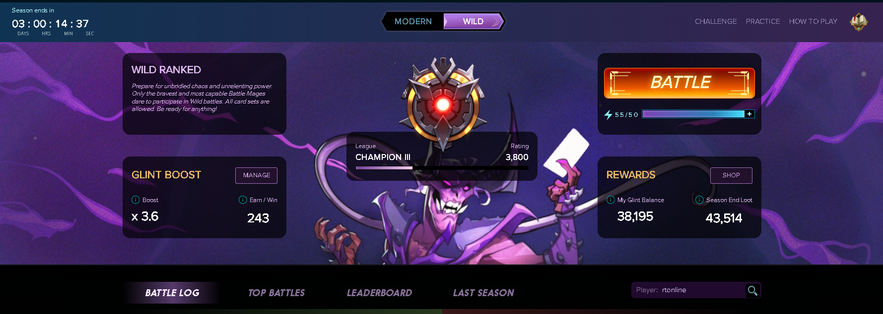 I am currently playing in the **Champion III League** and since my deck is not very powerful, the battles in the **Champions League** are really difficult for me, but I still manage to win some battles and managed to progress up to 3800 rating. Except for the **Soulbound Summoner cards**, the level of my rare summoner cards in my deck is 4, and the level of my legendary summoner cards is 2, so these levels are very insufficient for the champions league, but it is amazing that I am still winning the battles. Even though my gaming experience allows me to win some battles, I believe that I will be more successful in the champions league if I can grow my deck a little more. There are 3 days left in the season and I have already managed to collect 43,514 Glint coins for the end of the season and my goal is to exceed 50K and buy more items from the reward shop.  **Major** and **Ultimate** **Chests** are my favorites in the reward shop and so far some great things have come out of them, but I will not choose to buy it at a 50% higher price. And I still have the right to buy 10 Major chests before the price increases by 50%, so I'll buy them and open them. At the start of every Ranked Season, the shop resets and items are restocked at their initial prices so I won't be buying from them again in the current season but will continue to buy from them next season. Also, I plan to buy it in the Epic and Legendary draws next season if I can collect more Glint tokens. **Major Chests**  I got a legendary, 5 common, 7 energy, 25 potion from major chests which is great, that's why I love Major chests. Considering that the legendary draw is 25,000 Glint, it has been quite profitable for me to buy and open 10 major chests. **Ferexian Hero**  I only need one more copy to upgrade my Ferexian Hero card to level 3. And when I upgrade it to level 3, it will gain the Reflection Shield Ability. Reflection Shield Ability is the ability I need most in the Fire Unit, so I can't wait to upgrade it to level 3. The fact that it will have both Weapons Training Ability, Reach Ability and Reflection Shield Ability will make it a special card for my team. I will be able to develop many new strategies with it, especially for Blast battles. I hope you are having a great season and I wish you all the best of luck. All Images Taken from Splintelands. <center></center> **Would you like to join Splinterlands? [Here is my reference link](https://splinterlands.com/?ref=rtonline)** Thank you for reading. @rtonline <center></center> <center></center> Posted Using [InLeo Alpha](https://inleo.io/@rtonline/my-current-season-progress-and-buying-and-opening-chests)