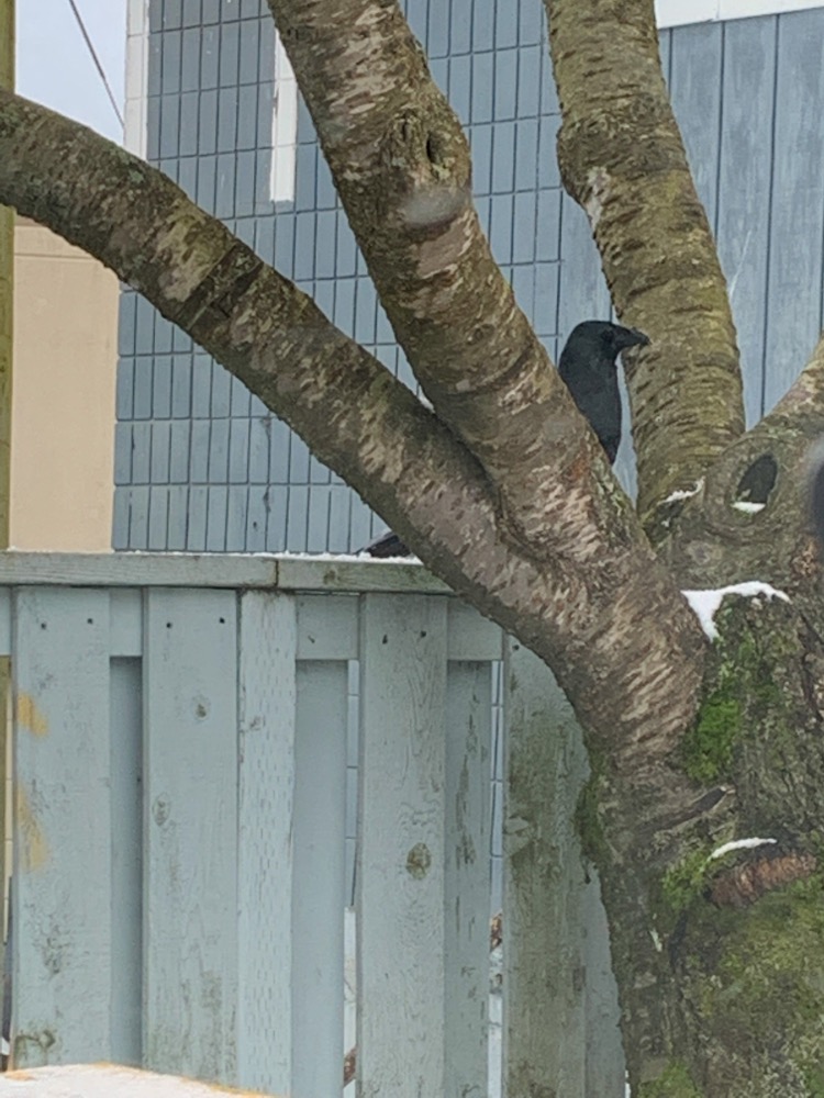 Much bigger than a crow I think and the beak is different. Not sure if it is big enough to be a raven though. It was eating snow. Posted using [Partiko iOS](https://partiko.app/referral/rvgenaille)