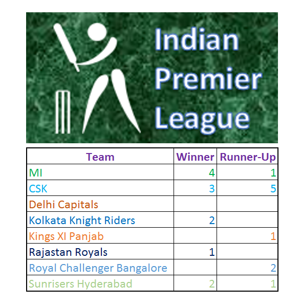 Till now, every year IPL is get dominated by two best teams : Mumbai and Chennai Though other teams have shown a great play in some session, but they are never consistent with the performance. Hyderabad recently showing good, but initially it was just a under performing team. Similarly Bangalore, being the best team in table, has never won the title along with Delhi and Punjab. If we will go through the strength of each team, then most of them have almost equal ability to lit up the trophy. But most of the team fall due to inconsistency. Let's look at the title winners in IPL.  You may be surprised to see that Mumbai and Chennai are almost in every final and that's why we call them the favorite. If we ll go through the team strength, they are equally superior, compared to Hyderabad or Kolkatta or Bangalore. But finally, the contribution of coach, mentor and management along with the ability of the captain determines a win. So whom do you think will lift the title this year? Please comment !!!!!!!!