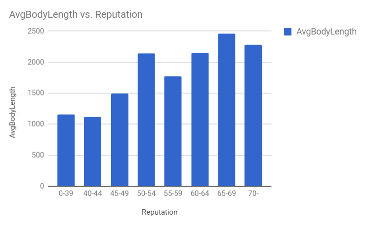 안녕하세요. 박세계입니다. 며칠 전, 다음과 같은 통계를 올렸습니다. 아직 안보셨다면 분석 이해도를 높이기 위해 먼저 보실것을 추천합니다. * [[통계] 작가 보상과 스팀 파워의 상관관계 (1)](https://steemit.com/kr-stats/@segyepark/2nmzsv) 이번에는 '**작가 보상과 명성도의 상관관계**' 통계입니다. 결론부터 말씀드리면, **그래프가 아주 이쁘다**는 것입니다. 즉, 스팀파워보다 더 정비례 하여 보상에 영향을 미치고 있습니다. 스팀파워와 다르게 시간+노력의 조합 없이는 절대 단기간에 올릴수가 없는 명성도의 경우 '노력은 배신하지 않는다'의 좋은 예를 보여줍니다. > 데이터 기준 > * 보상이 완료된 KR내 최근 2주 게시글 (2017-08-11 ~ 24) > * 명성도 기준은 2017-09-01 > * 데이터는 @arcange 님의 [SteemSQL](https://steemit.com/steemit/@arcange/steemsql-com-a-public-sql-server-database-with-all-steemit-blockchain-data)을 참조했는데 보상액이 원본 블록체인과 완벽하게 맞지는 않습니다. 하지만 일치하는 경우가 많고 크게 다르지 않아 추이를 보기에는 문제가 없을걸로 판단합니다. >* 보상은 작가 보상이 아닌 게시글 보상(작가+큐레이터 보상)을 뜻합니다. 하지만 게시글 당 작가 보상의 비율이 75%로 일정한 관계로 추이를 보기에는 이 역시 문제가 없을걸로 생각합니다. # 목차 1. 게시글 수 & 유니크 작가 수 2. 게시글 평균 글자 수 3. 작가 별 평균 게시글 수 & 게시글 별 평균 보상($) 4. 게시글 총 보상($) 5. 게시글 최소 보상($) 6. 게시글 최대 보상($) --- # 1. 게시글 수 & 유니크 작가 수  * 명성도 위로 올라가기가 점점 힘든만큼 유니크 작가 수는 당연히 점점 줄어드는데 반해 60 이전까지 포스팅 수 는 오히려 점점 많아지는게 흥미롭습니다. 60이 되기 전까지는 글을 더더 미친듯이 써댄다는걸 알 수 있습니다. 지금 저처럼요. * 이후의 '작가 별 평균 게시글 수'에서 다시 보겠지만 그렇다고 60 이후부터 글쓰기가 확 준것도 전혀 아닙니다. 유니크 작가 수가 60 부터 급격히 주는걸 보면 해당 명성도까지 버티기가 그만큼 힘들고, 그러기에 60 이후로 작가수가 아주 적은것을 볼 수 있습니다. * 65 이상이 진짜진짜 힘들고 60까지는 통상 3-6개월 정도 열심히 하면 도달하게 되는데, 생각보다 활동 작가가 적기에 60 이후만 해도 부각되기 훨씬 쉬워집니다. 홧팅입니다. # 2. 게시글 평균 글자 수  * 스팀파워 통계와 동일하게 명성도가 오르면 오를수록, 즉 시간이 흐르면 흐를수록 무성의한 글이 아닌 정반대로 점점 긴 정성글을 쓰는걸 확인 할 수 있습니다. * 글쓰기도 운동과 같아서 경험치를 쌓으면 쌓을수록 더 좋은 글을 더 빨리 쓸 수 있게 됩니다. 그로인해 상대적으로 짧은 시간에 더 큰보상을 자연스럽게 받게됩니다. 현재의 보상에 개의치 말고 꾸준히 쓰는건 진리임을 확신합니다. (이부분은 개인적으로 느끼는 바가 많아서 통계 데이터임에도 사견을 포함했습니다.) * 55-59 구간에서 평균 글자 수가 '살짝' 줄어드는건 열심히 달려온 후 살짝 숨고르기를 하는건지 어떤건지는 잘 모르겠습니다. 그래도 여전히 후상향 그래프를 크게 벗어나지 않습니다. (네, 맞습니다. 제가 해당 구간 정중앙인 57이라서 변명좀 해봤습니다 ㅜㅜ) * '글자수=정성'은 절대적 공식으로 생각할 수는 없지만 그게 아니라고도 할 수 없습니다. # 3. 작가 별 평균 게시글 수 & 게시글 별 평균 보상($)  * 작가 별 평균 게시글 수가 '2. 게시글 평균 글자 수'와 매우 유사하게 점점 상승하는 걸 보실 수 있습니다. 초반에는 여러가지 이유로 글쓰기가 쉽지 않은걸 추측 할 수 있습니다. * '게시글 별 평균 보상($)' 결과는 더 놀랍습니다. 스팀파워와의 상관관계 통계에서도 예상을 뒤엎고 이렇게 정비례로 상승하지 않았는데, 명성도가 올라갈 수록 이쁜 곡선을 그리며 평균 보상이 올라가는걸 볼 수 있습니다. 노력이 배신하지 않음을 가장 명확히 볼 수 있는 결과 입니다. # 4. 게시글 총 보상($)  * '1. 게시글 수 & 유니크작가 수'와 비교를 하며 봐야 합니다. 게시글 수와 어느정도 비례하여 총 보상이 분포되는 걸 알 수 있습니다. 스팀파워 기준 통계보다 더 비례하는 모습을 볼 수 있습니다. 즉, 명성이 오를 수록 마냥 보상이 많이 쏠리지 않고 나름 공평하게 보상 분배가 이뤄지고 있습니다. * '3. 게시글 별 평균 보상($)'과도 같이 봐야 합니다. 어느정도 공평하게 보상 분배가 이뤄진다고는 해도, 명성이 오름에 따라 평균 보상도 올라가는 추세입니다. 즉, 명성이 올라갈수록 총 보상이 완전 정비례가 아니라 우상향 곡선을 그리며 '명성에 비례하여' 공평하게 상승합니다. # 5. 게시글 최소 보상($)  * 70 명성 이전까지는 여전히 $0.0X 보상을 가져가는 경우가 있음을 보여줍니다. 우리는 혼자가 아닙니다. * 70 명성 스팀파워 이상이 되어야만 절대적 최소보상이 보장됩니다. 즉, KR내에서 특권을 누릴 수 있는 사용자는 현재 @sochul 님, @leesunmoo 님, @clayop 님 단 세분밖에 계시질 않습니다. 그렇지 않은데도 매번 어느 정도의 최소 보상을 확보하시는 분들은 정말 잘하고 계신겁니다. # 6. 게시글 최대 보상($)  * 명성도 50 이후로 $100 이상의 최대 보상이 보장됨을 볼 수 있습니다. 명성 50까지는 도저히 불가능 할 정도의 노