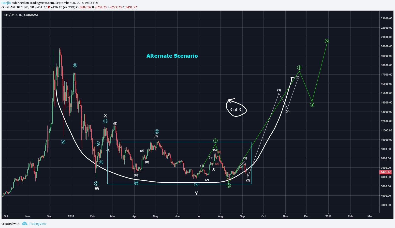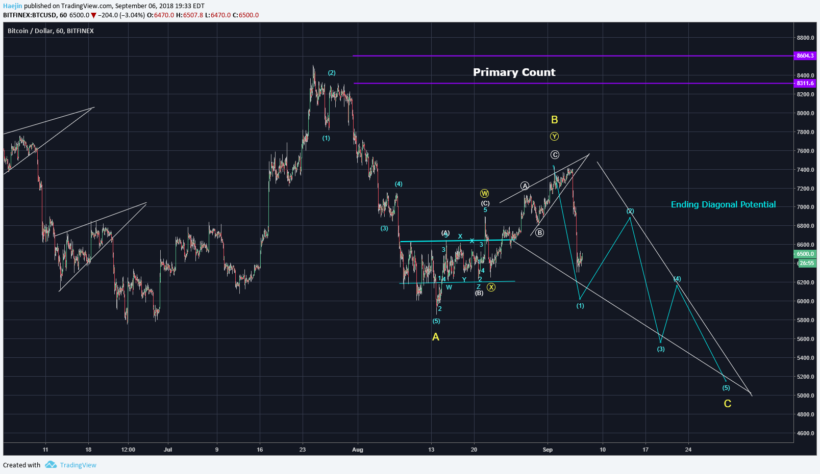안녕하세요, 주노입니다. 자연의 시계가 가을을 향해 가고 있습니다. 요 몇일 게시판이 더욱 한산하게 느껴지는게... 다들 뭐하고 계신가요? 스몬 작전 짜고 계신 분들도 계실테고^^ 시장이 활력을 잃고 스팀도 저점을 찍고 있는 이때 전 그나마 스팀몬스터가 한 줄기 신선한 바람을 불어 넣었다 생각합니다. 요즘의 스팀잇은 밝고 통통 튀는 듯한 느낌이 없었던 차에 뭔가에 흥분할 수 있고 기대할 거리가 생겼다는 관점에서 말이지요.^^ 그런 의미에서 현재까지의 해진님의 골드 포일 레젼더리 콜렉션을 보여 드리겠습니다.  빈자리 하나는킥스타터의 신로 레젼더리 카드가 채워질 예정입니다. 아직 게임의 대결 룰들을 다 알진 못하지만 팀을 결성할 수도 있다니 그 부분도 흥미로울 듯 하고 kr팀과 영어권이 붙는 재미난 일도 있을 법 합니다. 혹 골드카드에서 불리한 경우 여분의 카드로 도움을 드릴 상황도 예상해 봅니다. 위의 그림으로 게시판 머리 사진은 커버가 된 것 같으니(연막^^) 오늘의 본론인 비트코인 차트를 올려 보겠습니다. 차트분석가는 여러가지의 가능성을 봅니다. 아래는 비트코인의 30일, 60일, 120일....등 시간의 사이클을 나타낸 차트입니다.  아래는 비트코인의 프라이머리 차트입니다.  혹 2주전 코인이 아직 바닥이 아닐 것이란 제 글을 기억하시는지... 이 차트의 흐름은 이미 2달전부터 예상해 온 것입니다. 예전 어느분인가 기초도 모르는 사람의 차트같단 댓글이 생각나 이번엔 카운트 표시가 좀 되어 있는 차트를 받았습니다.^^ 사실 복잡하게 카운트 된 차트를 받아 온 들 차트분석가가 아닌 저나 여러분은 기술적인 부분의 이해가 어렵습니다. 기술적 분석으로 WXY, WXYXZ , ABC, ABCED, 123,12345....등등 가격의 움직임 속에 패턴을 찾아내고 그 속에서 많은 산출법이 요소마다 카운트되어 하나의 차트가 만들어지고 그중 가장 확율이 큰 차트가 프라이머리 차트가 되는 겁니다. 이 차트의 움직임의 예상 하락을 $5200 근처로 보고있고 잠시 순간하락치가 $5000이($4700) 깨질 경우도 보고 있습니다. 그럼 이런 하락이 일어나지 않으려면 어떤 움직임이 필요한지 알터네이트 차트로 설명 드리겠습니다.  제 2달전 포스팅의 글 말미에 잠시 설명드렸습니다. 짧게 지나가는 말이였지만 혹 눈여겨 보신 분이 계실지도 모르겠습니다. "비트코인이 $8300을 뚫어야**만** 상승장을 기대할 수 있지 않을까..." 이 말은 그당시 잠시의 반등이 있더라도 상승장을 속단하긴 어렵다...입니다. 그때 아주 잠시 $8300선을 뚫은 적이 있지만 버티질 못하고 곧 하락했었죠. $8300 더 확실히는 $8700을 뚫고 버뎌야만 상승장을 예측할 수 있기에 해진님은 줄곧 자신의 프라이머리 차트 움직임을 중요하게 보시고 계십니다. 그럼 비트코인의 하락치가 깊으니 앞으로의 전망이 부정적일까요? 그렇게 생각하지는 않습니다. 하락이 깊은 장엔 공포감이 존재하고 패닉셀이 등장합니다. 그것을 가장 잘 나타내는 것이 한순간 깊이 떨어졌다 올라가는 "순간 최저 하락가"입니다. 그리고 그것을 하락장의 바닥을 친것으로 예상할 수 있고 그 다음이 상승장이지 않을까...예상해 봅니다. 미국의 주식시장의 결정권을 쥐고 있는 SEC (Security & Exchange Commission)에 오늘 트럼프가 크립토시장에 긍정적인 한명을 임명하여 4명 되었습니다. 또 그간 늘 ETF(Electronically Traded Funds)에 반대표를 던졌던 두명중 한명은 올해 말 임기가 만료된다 합니다. 그럼 상황은 반전이 될 것으로 보여져 새삼 흥미로울 것 같습니다. 트럼프는 미국의 대통령 이전에 사업가입니다. 그리고 오늘 SEC의 임명을 보고 해진님이 눈을 찡끗하시며 했던 말씀입니다. "트럼프는 분명 비트코인을 꽤 소유하고 있을거야 만약 트럼프 자신이 아니라면 그 자식들이라도.." 즐거운 주말 보내시길 바랍니다~.^^ P.S. 차트와 분석은 비트코인라이브의 해진님 허락을 받고 옮겼습니다.