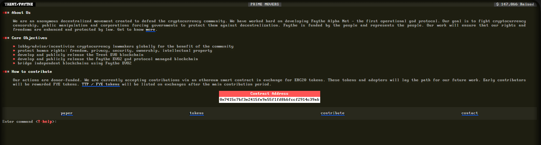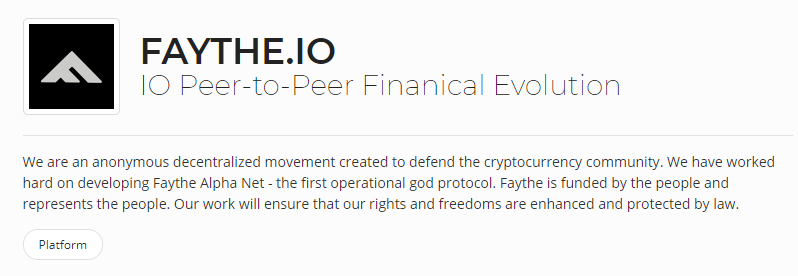 Well when I was wondering internet I started to heard about this a lot I don't have much idea about this therefore I wanted to create a post to get feedback from possible knowledgable people about this. #### Website : https://www.faythe.io/  #### What is **Faythe** ? >Let us introduce Faythe - Anonymous decentralized movement based on a God Protocol with human trusted third parties where those parties provide insight or knowledge that cannot be provided by a computer. Using such a structure allows us to discover and defuse any conflict of interest before any internal corruption occurs. Fraud is prevented by using multiple oracles connected on a smart multisig proof-of-work input system. Autotomy is used on all external links and inputs. Faythe is governed by its mission and decides on the priority of proposed actions and lobbying campaigns. Faythe is in charge of the planning and fund allocation. The combination of dry code and wet code allows Faythe to exist and operate securely with trust minimization. The Faythe Alpha Net is operating since the begining of this year, allowing us to comunicate and coordinate actions in a way that wasn't possible before  Well I readed some stuff from their website however I couldn't grasp the complete idea but I must admit that it looks intriguing  I will definetely search more about this however I would really love to learn what do you think about this and What do you know about **Faythe.io** ? Is it a good ICO? <center></center> #### <center>Thanks for Reading & Hasta La Vista!</center>