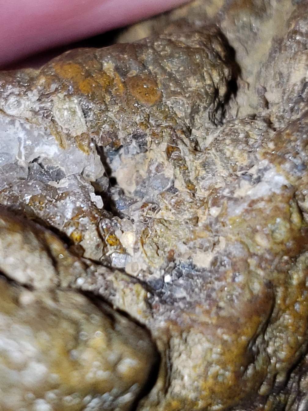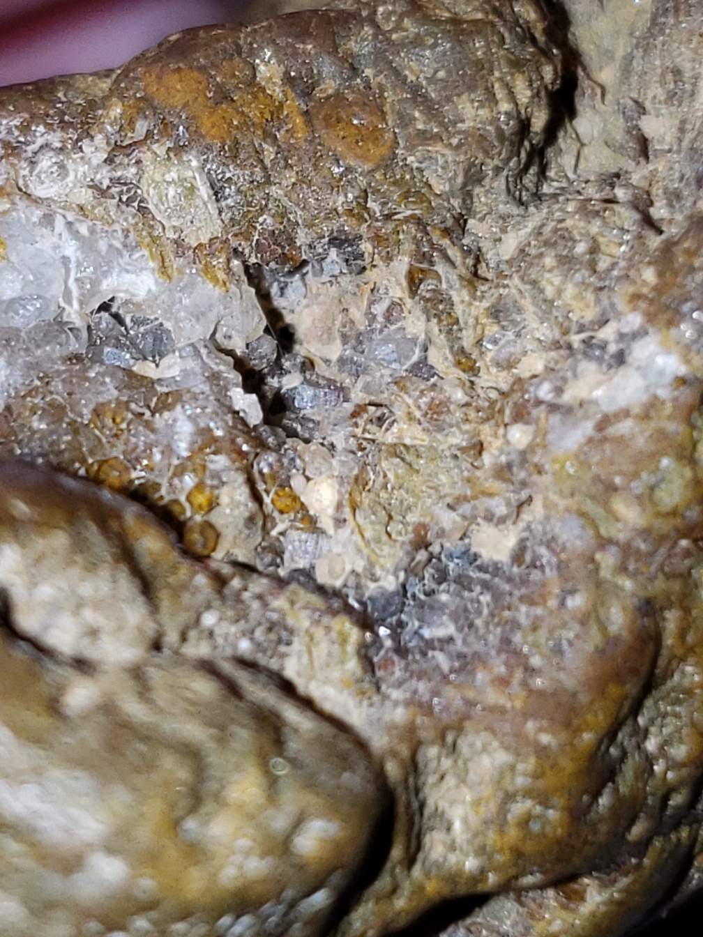 **This is a piece of Coprolite or fossilized dung haha.**  **This shit has some nice gemstones in it regardless lol**         **I love coprolite even if it's just a really old pile of poop** ๐  Posted using [Partiko Android](https://partiko.app/referral/steinz)