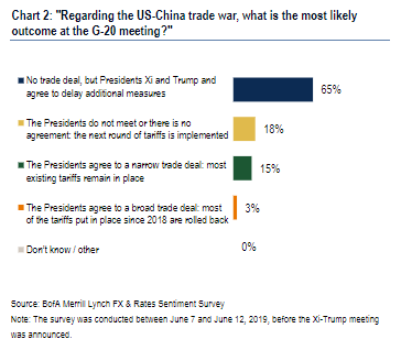 ___ *** ___ # What will happen this weekend will determine the course of the financial markets for 2019 ___ *** ___ - Next Saturday there is a very important meeting on the agenda. President Donald Trump and President Xi Jingping will meet at the G20 summit in Osaka, Japan. According to market experts, the meeting will determine the course of the markets for the remainder of 2019. - A further worsening of the trade war may, according to various economists, bring the world economy into recession. Arend Kapteyn, economist at investment bank UBS said: ___ *** ___ ### "If the trade war gets out of hand, we estimate that global growth will turn out to be 0.75 percent lower for the next six months, leading to a mild global recession. Similar to the crisis in the euro zone, the oil crisis in the mid-80s and the "Tequila" crisis in the 90s." ___ *** ___ ## How does the market assess the opportunities? ___ *** ___ - The market does not expect a solution to be found in the conflict between the United States and China. However, a majority expects a ceasefire in the trade war. According to a survey by the American bank Bank of America Merrill Lynch. ___ *** ___  ___ *** ___ - 65 percent of those interviewed expect presidents Trump and Xi to agree not to impose additional rates or other measures for the time being. But that won't lead to a deal. - And that is the same thing that different economists expect. Despite the recession scenario that exists, when the trade war gets out of hand, it is most likely that there will be a ceasefire. Cesar Rojas, economist at Citigroup, said: ___ *** ___ ### "[I expect] a ceasefire with a symbolic handshake." ___ *** ___ ## Ceasefire positive for stocks ___ *** ___ A ceasefire could also have a positive effect on the financial markets. According to Peter Boockvar, top strategist at Bleakley Advisory Group, the stock market will do well if such a deal is made. But in moderation, the strategist said: ___ *** ___ ### "The fact that the rates still exist will limit the size of a rally." ___ *** ___ Source: <a href="https://www.cnbc.com/2019/06/25/trump-xi-trade-tariffs-still-seen-hurting-economy-even-after-g-20.html">CNBC</a>