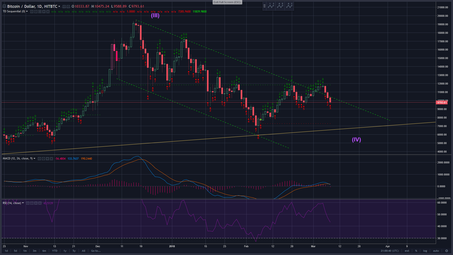Bitcoin keeps dropping, at fearful volumes. Will this end, or IS it the end? I'll present several analysis tools for you today. First a hourly chart from Bitfinex:  The Superguppy tool show no positive signs this time. The fast blue traders group's action is below the slower red Investors group. Both groups are widening, expressing great uncertainity in both groups. ---- Next up is the daily chart from Hitbtc, with TD sequential, MACD and RSI. Hitbtc price is about $400 above the others. TD on a 3 red with solid red bars, and price has dropped well below the green support line. Last red TD 9 supports at $7,300. The yellow long term trend line support is about $6,600.  MACD crossing down below the signal line, and also dropping below price line, indicating we are going lower. RSI is dropping down, and may go down to 30 worst case. ---- The 4 hour chart from Coinbase is also bearish, altough the last candle are currently green and up.  Price has dropped below the Ichimoku cloud, wich is twisting to red ahead. Bollinger bands widening out, and volume show clearly that a sellout have happened in two large chunks. All in all a quite bearish day, and it looks like it is going a little more. ---- The final chart show something many have pointed out, an inverted head and double shoulders.  This could be in play as we speak, and may be our resque for now. If no reversal happen the next hours I'm afraid we are going to test the support lines at $7,300 and $6,600. If they break we are going to a double bottom at $6k, or even a lower low. ---- *These are just my thoughts, not a trading advice.* *If you have another view on this post your welcome to discuss and post your charts in the comments.* *If you'd like my technical analysis on another coin, please ask in the comments.* <center><a href="https://steemit.com/@thedolphin"><img src="https://steemitimages.com/DQmX4TukYouJPNr8BAtYRwgVciQYsot8rRTuLCopzqkMxek/followThedolphin8080.png"/></a></center> <h4>Comments are highly appreciated, and please [upvote](), [resteem]() and [follow me]() if you profit or otherwise enjoy my posts !</h4> I'm also active at <a href="http://www.investfeed.com/" onClick="window.location = ('http://www.investfeed.com/datsellof?rec=a801cdf'); return false"><img src= "http://www.investfeed.com/media/images/buttons/invf_med_rect.png"/></a>