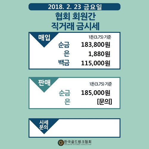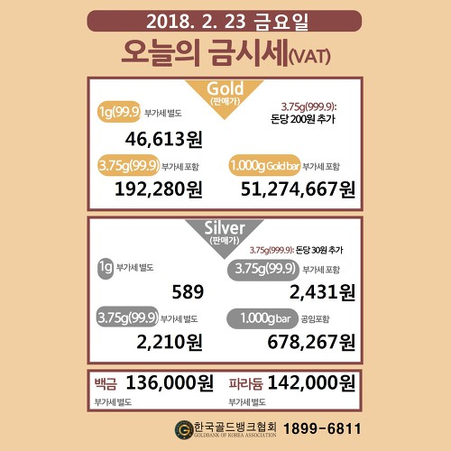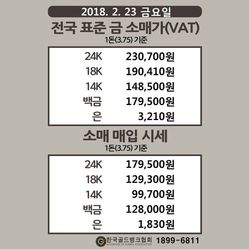2018.2.23 오늘의금시세