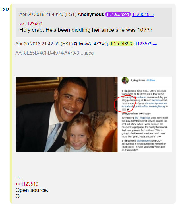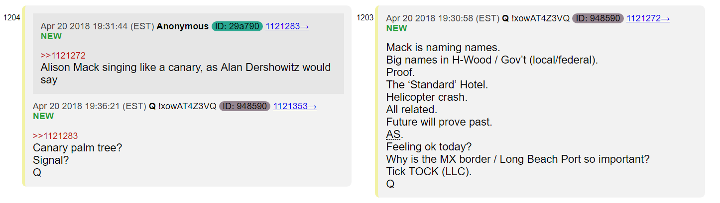 ## G.U.N.-Report #QAnon Mack is Naming Names Ep019/18 #WendyWassermannSchulz https://www.youtube.com/watch?v=OJbUHyxzWFA&feature=youtu.be ## http://globalundergroundnews.de/ ## Trap Card / Trump Card Comming  ##  ## Hier nimmt Q bezug auf einen schon vergangenen Post zu einenm Helicopter Apsturz  ## Auch auf das Standard Hotel und seinen Manager wird hier Bezug genommen  hierzu ist auch ein Bericht über den NXIVM Cult wichtig den Wir in einem rein schriftlichen Beitrag auf Global Underground News fixiert haben: http://globalundergroundnews.de/g-u-n-qanon-report-dalailama-nxivm/ Zu Mack von Smallville und dem NXIVM Cult gibt es einen Artikel auf FOX News den wir empfehlen: http://www.foxnews.com/entertainment/2018/04/21/smallville-actress-allison-mack-arrested-for-alleged-sex-cult-involvement.html  ##  Auf 8Chan wurde das ganze nun Mit einem Menschenhändlerring und einer App in Verbindung gebracht ##  ## Warum ist die mexikanische Grenze/ Long Beach Board so wichtig? Dabei geht es wieder um den Schutz der Grenze aus diversen Gründen und es geht nicht nur um krimminelle Einwanderung sondern auch um das vom DeepState initiallisierte "Organisierte Verbrechen" ##  ##  Some Funny Thinks - die Anekdoten von Q: Ein Anon meinte Mack würde singen wie ein Kanarienvogel und Q reagiert mit dem Canarien Palmtree den er wahrscheinlich diesbezüglich schon vorab gepostet hatte ##  ## Nun wird es wieder einmal Interessant: Es finden sich immer wieder die gleichen Charaktere zusammen im Post 1205 von Q finden wir ein Bild das von Alissen Mack gepostet wurde, es zeigt Marina Abramovich die übrigens demnächst in Bonn auftritt  Schön wie das Internet derzeit offenbart wer mit wem welchen Interessen folgt oder!? War es doch dazu gedacht, uns zu unterjochen. Hier noch ein schönes Beispiel: Die Verbindungen zwischen Allister Mack und ihren NXIVM Twitter Freunden:  Hier noch ein guter Artikel über das Standard Hotel https://www.neonrevolt.com/2018/03/13/looks-like-meats-back-on-the-menu-boys-hogghunting-now-tied-to-thestandardhotel-guncontrol-2ndamendment/ ## #1206 Post von Q  Hier kam es zu einer kleinen Auffälligkeit: Der Finger des Presidenten ist getaped, was viele an ein anderes Bild erinnerte das auf Marina, Podesta, Clinton und den PG Skandal hindeutet....  ## ## Aus dem Bericht, die Obamas beenden ihre Ferien aus dem Jahr 2010: https://vineyardgazette.com/news/2010/08/30/obamas-end-their-summer-vacation Sarah Nixon sagte gestern, dass das Restaurant 20 Minuten vor dem Präsidentenbesuch angekündigt wurde, aber die Wartenden und Küchenmitarbeiter stellten sich der Herausforderung, ein unvergessliches Essen zu servieren. Sie wurden am Ende der Nacht belohnt, als der Präsident selbst Gruppenfotos anforderte. "Er war so freundlich, ein Foto mit den Leuten zu machen, die uns jeden Tag gut aussehen lassen", sagte Frau Nixon. Sie lehnte es ab zu sagen, was der Präsident und seine Frau in dieser Nacht zum Abendessen gegessen hatten. "Ich habe ihnen einen herrlichen Sonnenuntergang von Menemsha gedient", sagte Frau Nixon, die berichtete, dass die Obamas nach draußen gegangen waren, um die Aussicht zu genießen und das Grundstück zu durchwandern. Drinnen fragte der Präsident Frau Nixons 12-jährige Tochter um Rat auf der Speisekarte. "Maggie, was magst du?" Hatte er gefragt. Sie antwortete: "Ich mag Reiten", was beide Familien zum Lachen brachte. "Er hätte nicht gnädiger sein können", sagte Mrs. Nixon von Mr. Obama. Die Obama-Ferien in diesem Jahr beinhalteten viel Zeit für die Familie - viel davon auf der Blue Heron Farm, weit außerhalb der Öffentlichkeit, wo es Berichte über stille Lektüre und Brettspiele während eines dreitägigen Nordosttourismus gab, der die Insel mitten durchfegte die Woche. ## Q Posts 1207 und 1208  Ein Anon frägt: Wendy, und Q bestätigt auf die übliche Art und Weise Hier der artikel der von Q dazu gelistet wurde: https://www.wehoville.com/2018/04/12/west-hollywoodss-mariah-sunshine-coogan-identified-victim-scottsdale-plane-crash/  ## Zur Klarstellung: "Wendy" ist Maggie Nixon ## Und nun kommt der Absolute Knaller: Potus tweetet einen unmissverständlichen Warnschuß ##  ## ## Dann welch Überraschung wurde der Tweet gelöscht und neu aufgesetzt  Köstlich und hier der Beweis für die, die der Sache aufgrund einer FakeNews Psychose nicht trauen.... Einige MSM Nachrichten  Wer das Spiel bis jetzt nicht geblickt hat kann sich stolz den MSM zugehörig fühlen denn das ist eines der köstlichsten Schmuckstücke die ich seitdem ich über Q berichte gesehen habe...... Live aus meiner Satteltasche !!!! Hier noch ein paar Perlen aus der Twitter Community:  https://ekla.in/trends/wendy-wasserman-schultz.html  ## Nun kommt der Verweiss auf die Nixons https://newyork.cbslocal.com/2016/09/28/agnes-nixon-soap-operas/  ## Wenn sich die Welt verändert / As the World turns  ## Post 2013 Und wär hätte das gedacht hier ist Wendy mit Obama  ## Post 2014-2015 Verbindungen zwischen Maggies Mum, Sahra Nixon und James Alifantis, dem Pizzamann höchst persönlich !  Q sagt ihr könnt euch nicht vorstellen wie groß diese Geschichte ist..... Es geht weiter mit den Krachern des Überwachungssystems das sich gegen sich selbst wend(y)et Sucht man nach Maggie Nixon und Obama zusammen erscheint: Marina O.  Die Conections gehen weiter, nun wird wohl aufgeräumt  ## Und hier für alle die sich schon über den Spitznamen gewundert hatten "Wendy" die äuserst passende MK Ultra Reverenz eines Anons  Soviel zu den heiligen aus den hohen Kreisen am Ende wird alles Aufgedeckt.....