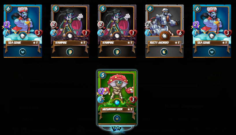 Привет! Начал я свой двадцать четвертый день с 1999 очками в лиге GoldIII, а закончил с 2081 очком в лиге GoldIII. Квест проходил за Воду. Награда совсем не радует, да и игр интересных становится всё меньше. Надо играть в турниры:) Одна раре карточка и та дешевая:  *If someone wants to register in steemmonsters, then you can do it by my referral link: https://steemmonsters.com?ref=veritasvav* *Anyone who wants to register for my referral link, let me know and I will vote for 5 of your posts with SP 3000-4000.*