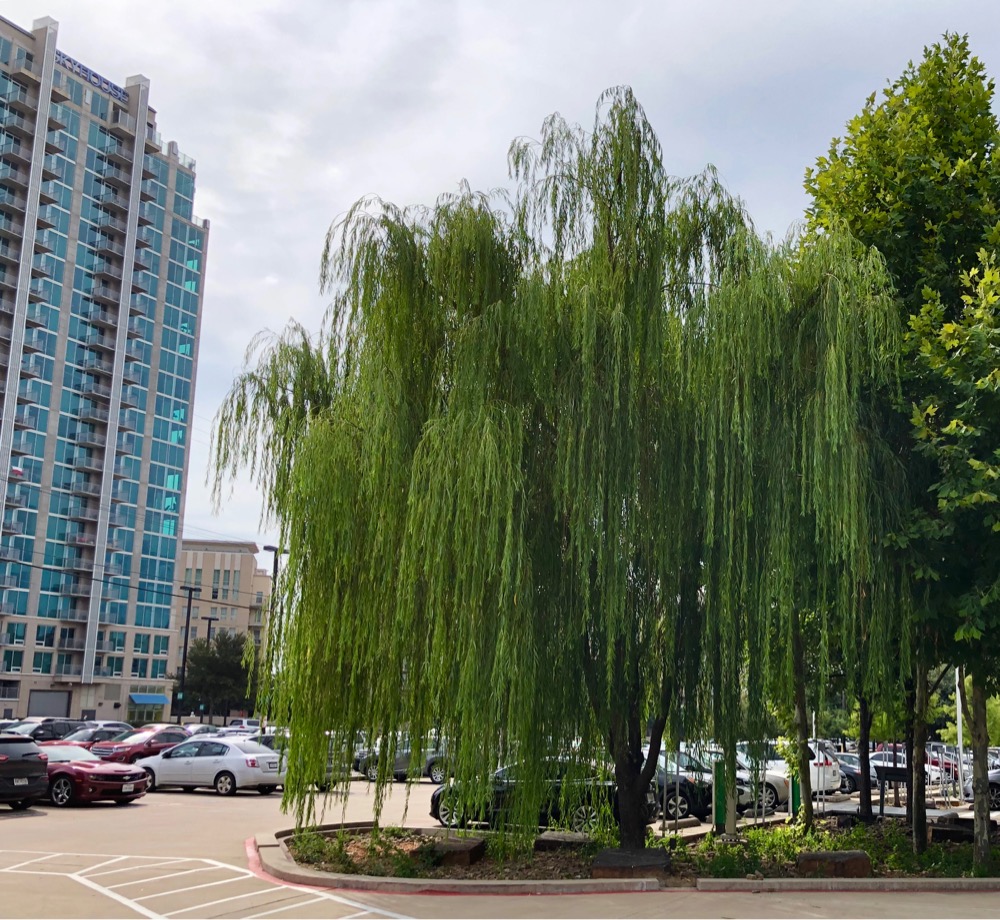 <center>  ___ I grew up with a willow tree in my front yard in El Paso, Texas. We loved climbing up in it and hiding in it. Unfortunately they have roots that like to grow into the sewer pipes, so we had to call a company a few times to clean the roots out!! ___ Anyway, I spied this one in downtown Dallas near The Perot Museum. ___  ___  ___  ___ **Have a Blessed Day!** ___  ___ *August 6, 2019 All original photos* </center> Posted using [Partiko iOS](https://partiko.app/referral/violetmed)