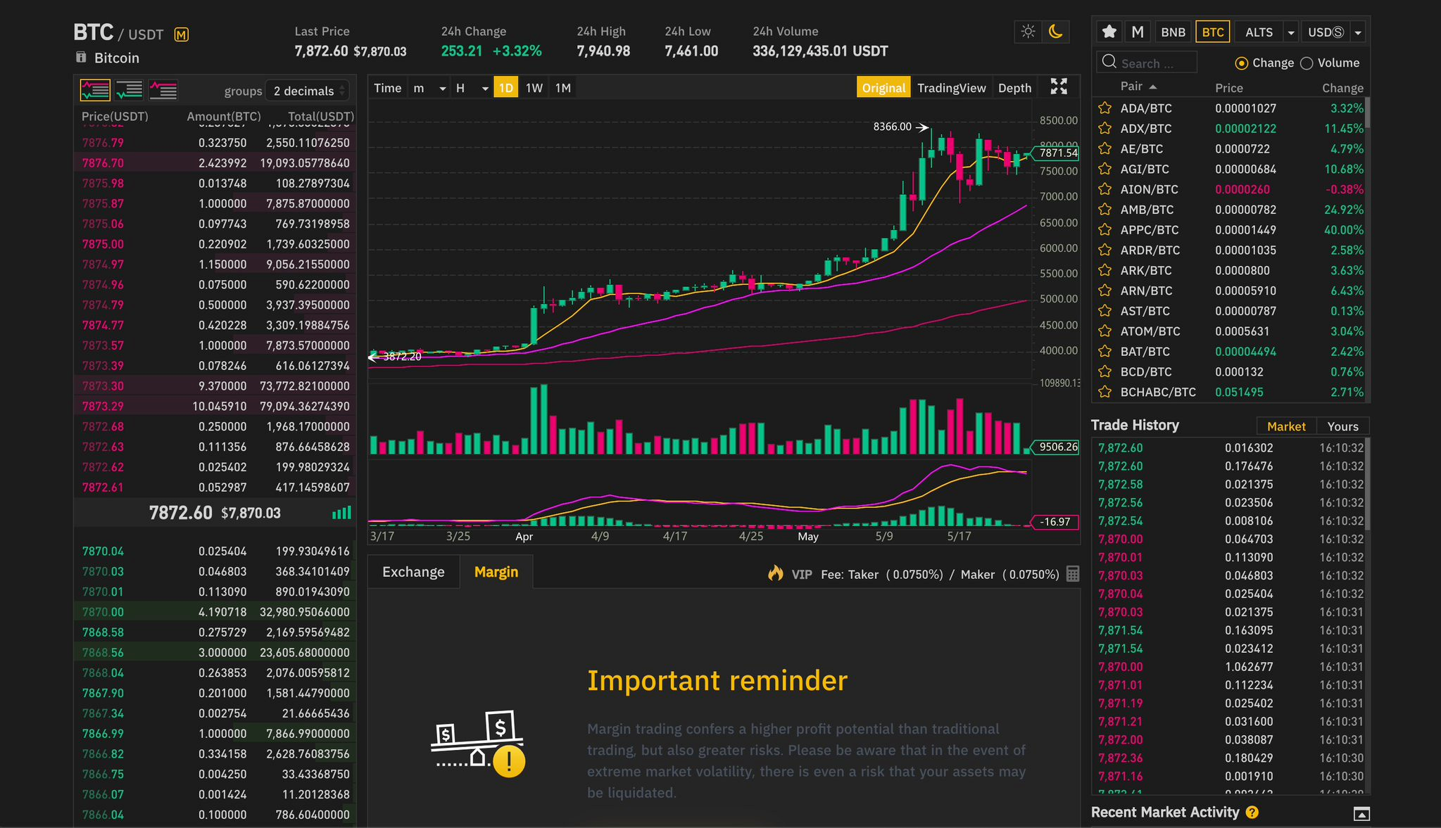 <center></center> # What is leverage trading It is pretty simple. Trading with a leverage is an ability to multiply the amount of money you are investing. For example, you have 100$ on your account, and exchange allow you to trade with 5:1 leverage, that means you can buy coins worth 500$, but you have to be careful. If coin you bought go down by 20% then you will be 'liquidated', that means your coins will be sold by the exchange to secure their assets. # Long and Short These two words will be repeating very often. When you are buying long positions you expect that asset you bought will go up. On the other hand when you are buying short positions you expect that asset will go down. # Register on binance It happend in past that binance closed registration. Right registration is open. But once they allow margin trading a lot of new users might want to join there so better hurry up and register there before that will happen. You can easily register there with this [link](https://www.binance.com/?ref=10785272)