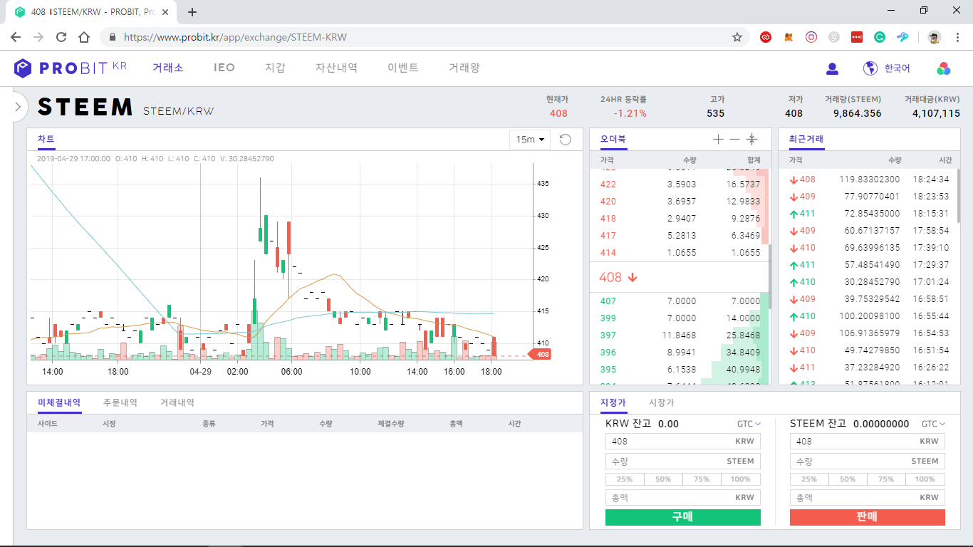 こんにちは、@yasuです。 STEEMを扱っている取引所を紹介しています。今回は、FREEDOMEXとPROBITを紹介します。 その他の取引所については、こちらでまとめています。 * STEEMまたはSBDを直接送金したいとき+DAYBIT https://steemit.com/japanese/@yasu/steemsbddaybit-1553537887351 ## FREEDOMEX || |---| 全体的にほとんど取り引きのない取引所です。 https://freedomex.io/  #### 取引量 24時間取引量0STEEM 24時間以内の取引が全くありませんでした。 #### 組合せ 扱う組み合わせが増えていました。(STEEM系だけを抜粋) STEEM以外にも、ENGやAFITも扱っています。 USD/STEEM SBD/STEEM KPOP/STEEM GAMER/STEEM FOODD/STEEM BTC/STEEM AFIT/STEEM BTCMYK/STEEM ENG/STEEM EPIC/STEEM STEEM/FREEX ## PROBIT ||| |---|---| グローバルと韓国で取引サイトが分かれています。ウォレットも別々にあります。 https://www.probit.com/ https://www.probit.kr/  #### 取引量 24時間取引量9,864.356STEEM #### 組合せ (STEEM系だけを抜粋) STEEM/KRW STEEM/USDT STEEM/BTC #### 私が普段利用している取引所、UPbitやGOPAX と取引量を比較してみます。 PROBITは、ときどき利用しているGOPAXよりも取引量が多いです。 FREEDOMEXは、他で扱っていない暗号通貨を扱っていたりしていますが、取引が行われているか分からないほどです。 |取引所 |24時間取引量(STEEM)|STEEM/KRW|STEEM/BTC|STEEM/USDT| |---|---:|---|---|---| |FREEDOMEX|0 |✖|〇|〇| |PROBIT|9,864 |〇|〇|〇| |DAYBIT|0 |✖|〇|✖| |UPbit|336,963 |〇|〇|✖| |GOPAX |2,661 |〇|✖|✖| 以上です。 --- ##### <sub> **Sponsored ( Powered by [dclick](https://www.dclick.io) )** </sub> ##### [What are the biggest problems that people face on steemit?](https://api.dclick.io/v1/c?x=eyJhbGciOiJIUzI1NiIsInR5cCI6IkpXVCJ9.eyJjIjoieWFzdSIsInMiOiJmcmVlZG9tZXhwcm9iaXQtMTU1Njg3MDk3MTQ5NCIsImEiOlsidC0xODI5Il0sInVybCI6Imh0dHBzOi8veW91dHUuYmUvVjNJdVZCbHYtWGciLCJpYXQiOjE1NTY4NzA5NzEsImV4cCI6MTg3MjIzMDk3MX0.nfviN3FFd67G7Z2iToKUyF6dXdPzpHALEkoWQ8LoU7M) <sup>My thoughts about Steem(it)</sup>